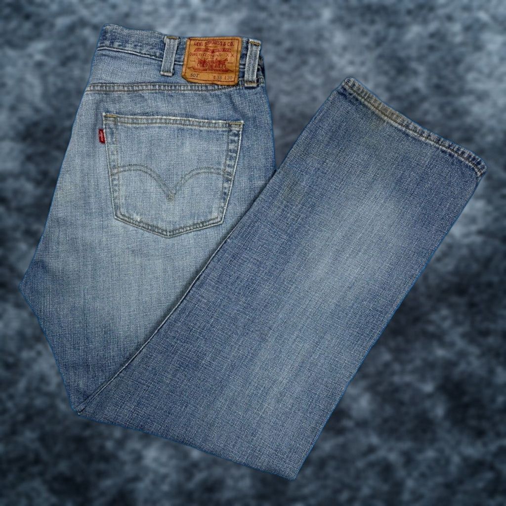 | Product Features | Seller DescriptionVINTAGE LEVI'S 501 MENS STRAIGHT LEG JEANS 38X30 LIGHT BLUE DISTRESSED DENIM 90SThese Levi's 501 men's jeans are a classic straight leg style with a button fly and distressed denim. They are made of cotton and feature a light blue color with a regular fit. The jeans have a vintage 90's theme and are part of the Levi's 500 series. Please note that there is some yellowing at the leg openings.👖 Size: 38x30🎨 Color: Blue🧵 Material: Cotton👖 Style: Straight Leg🕳️ Inseam: 30 in👖 Waist Size: 38 in🔩 Closure: Button👕 Fit: Regular🔩 Accents: Logo, Button, Zipper, Patch, Tab, Pockets📦 Country/Region of Manufacture: Mexico👕 Brand: Levi's👕 Model: Levi's 501👕 Product Line: Levis 500 Series👕 Theme: 90s, Casual, Comfort👕 Features: Distressed Dive into our treasure trove of vintage apparel, where every item is a piece of fashion history. Perfect for those looking to add a unique touch to their wardrobe. Wondering about the backstory of your next favorite piece or how to style it? We're always here to chat and guide you through your vintage journey.Blue | ||